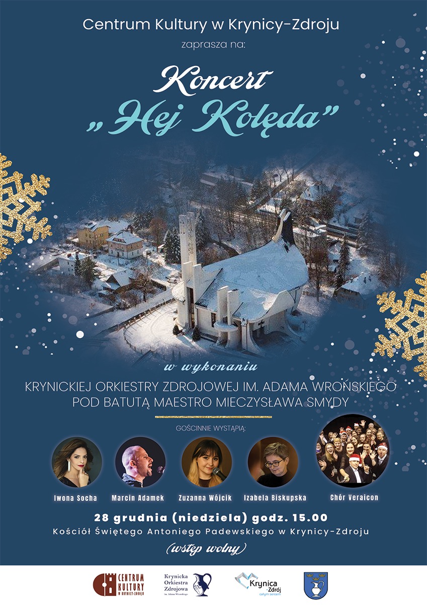 - Dziś o godz. 15.00 w kościele św. Antoniego odbędzie się koncert kolęd „Hej kolęda” w wykonaniu Krynickiej Orkiestry Zdrojowej. Szczegóły na plakacie.